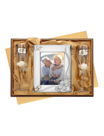 138,57 €Set Marco fotos personalizado 13x18copas 50 aniv. Bodas Oro Plata Bilaminada con Personalización y Envío Gratis.
