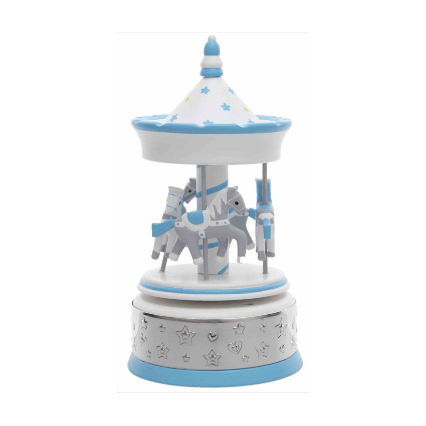 Carrusel musical caballos estrellas 11x23cm azul