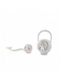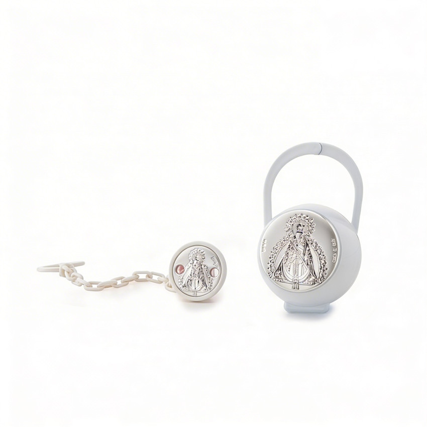 Set pinza porta chupetes Virgen de la Cabeza blanco