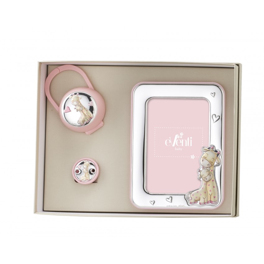 Set pinza porta chupete y marco 10x15 jirafa rosa