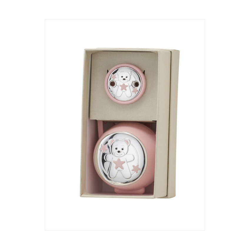 Set pinza guarda chupetes oso rosa