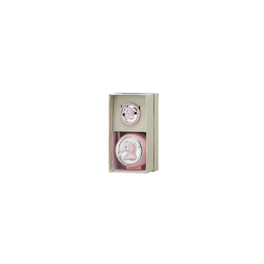 Set pinza y porta chupetes elefante rosa