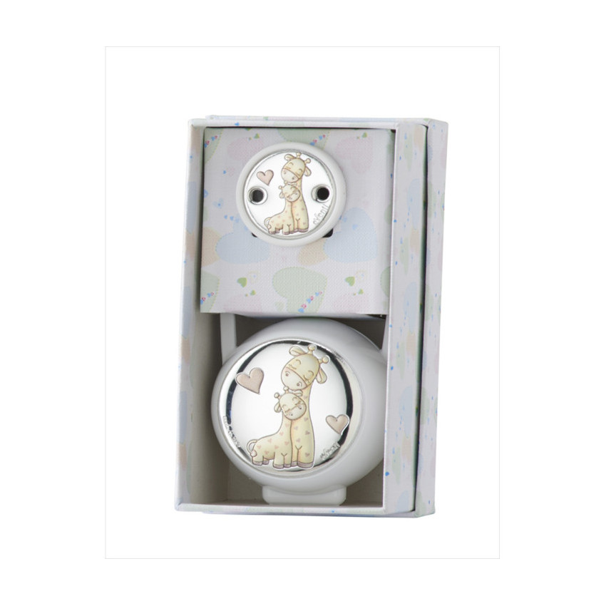 Set pinza porta chupetes blanco jirafa