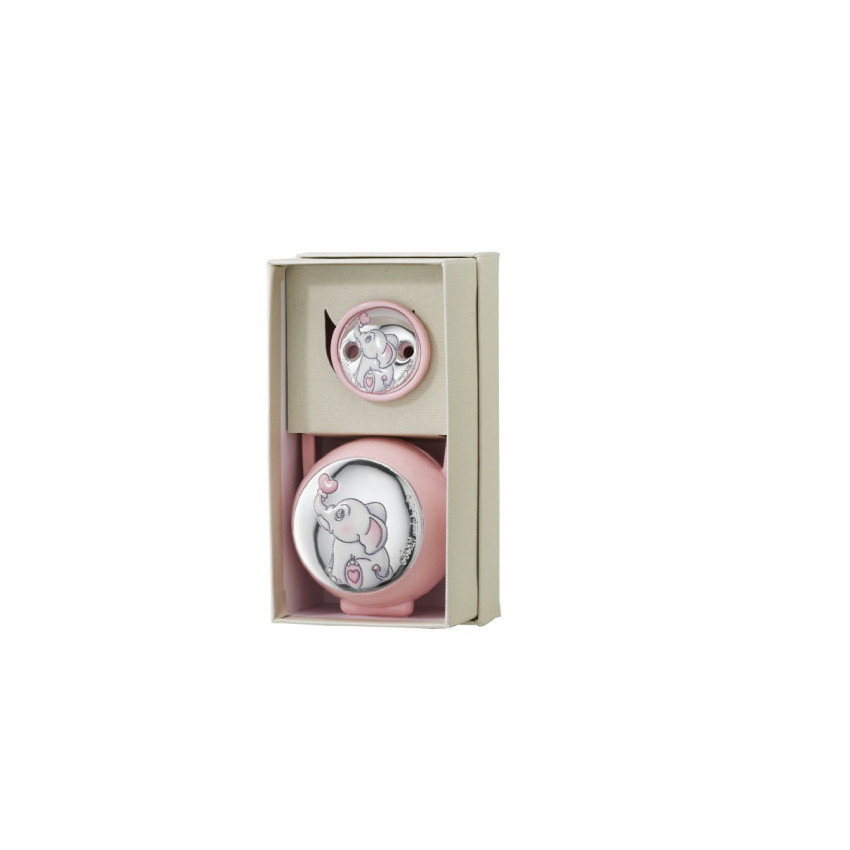 Set pinza porta chupetes elefante corazon rosa
