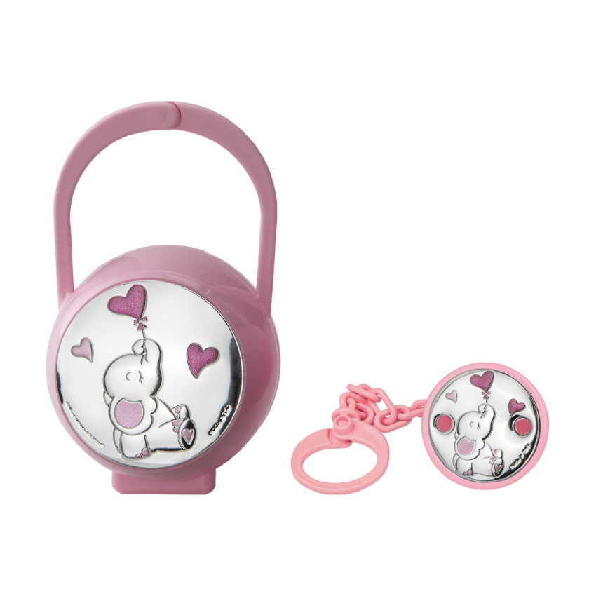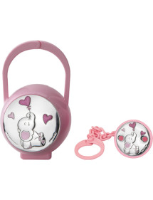 Set pinza porta chupetes elefante corazon rosa