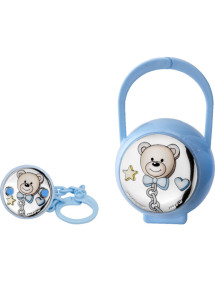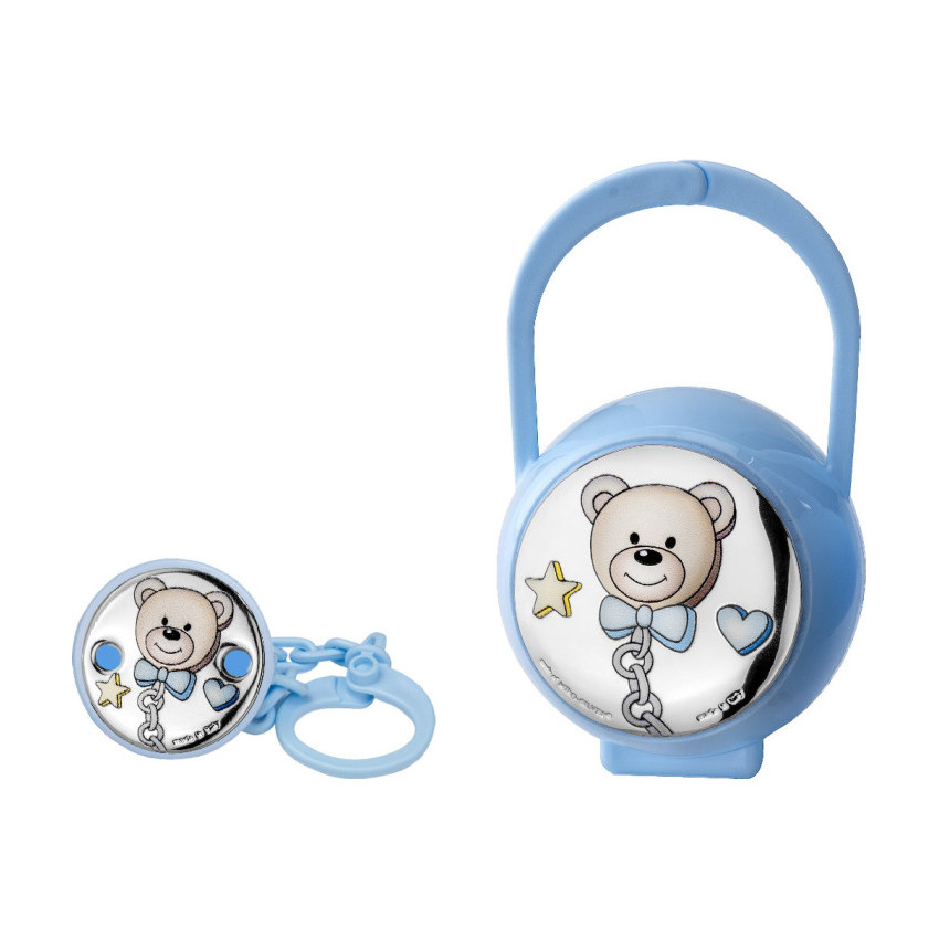 Set pinza porta chupete azul oso pajarita