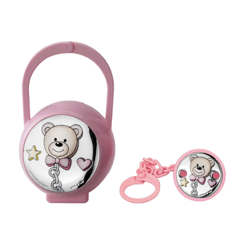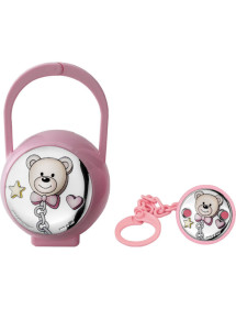 Set pinza porta chupete rosa oso pajarita