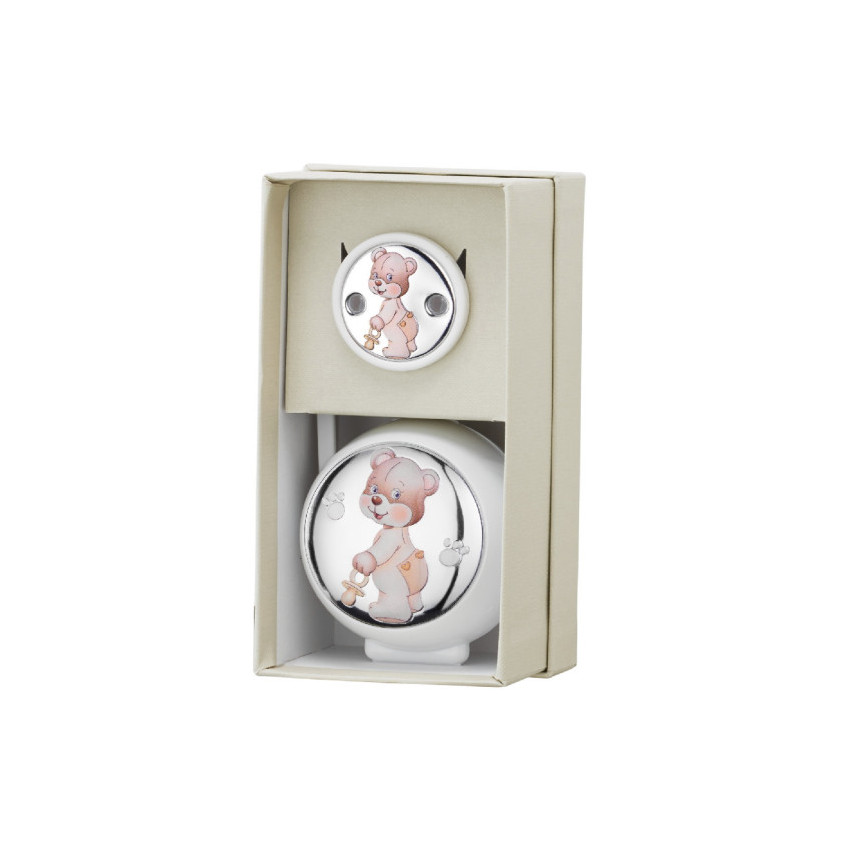 Set pinza porta chupete blanco oso huellas