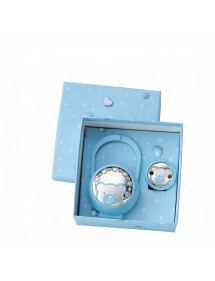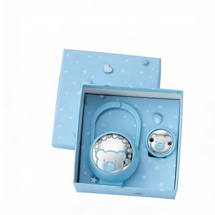 Pinza para chupete y chupetero personalizable con aplicación en Plata Bilaminada con osito en relieve