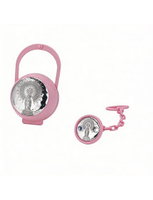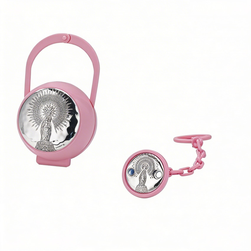 Set porta chupetes pinza Virgen del Pilar rosa