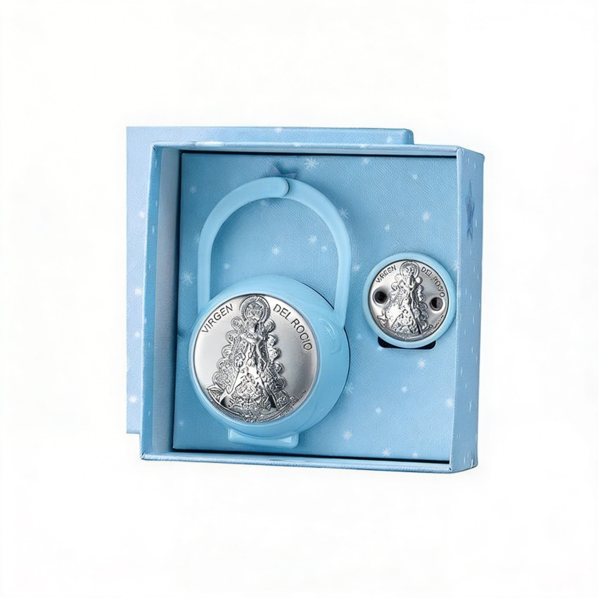 Set pinza porta chupetes Virgen del Rocio azul