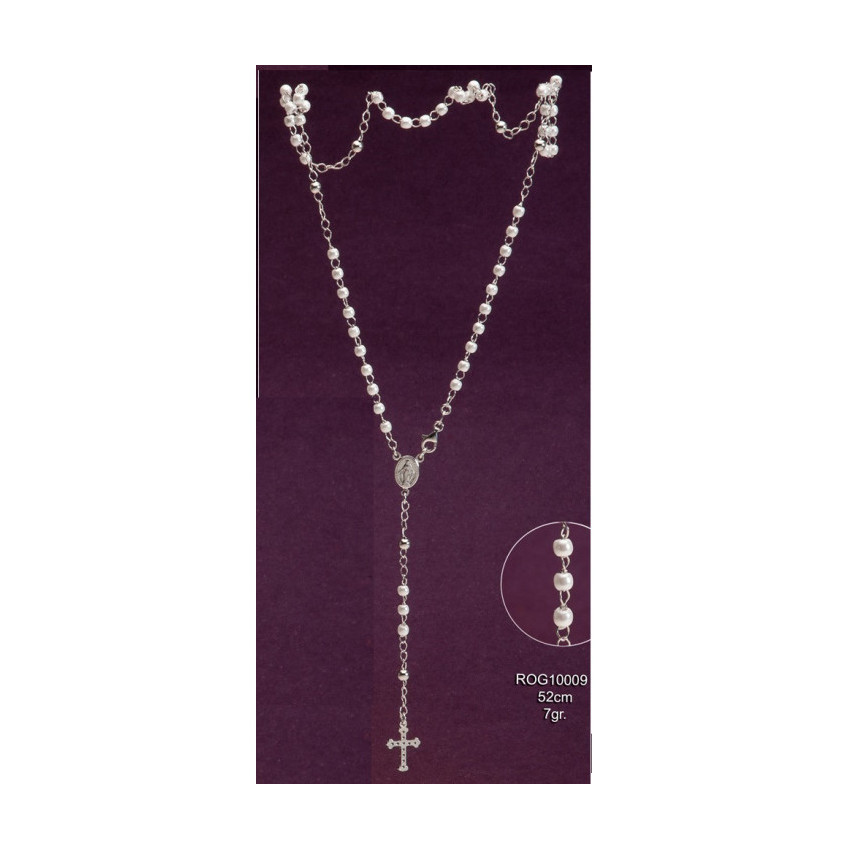 Rosario plata de ley 925 bolas de nacar 4mm 52cm, 7gr