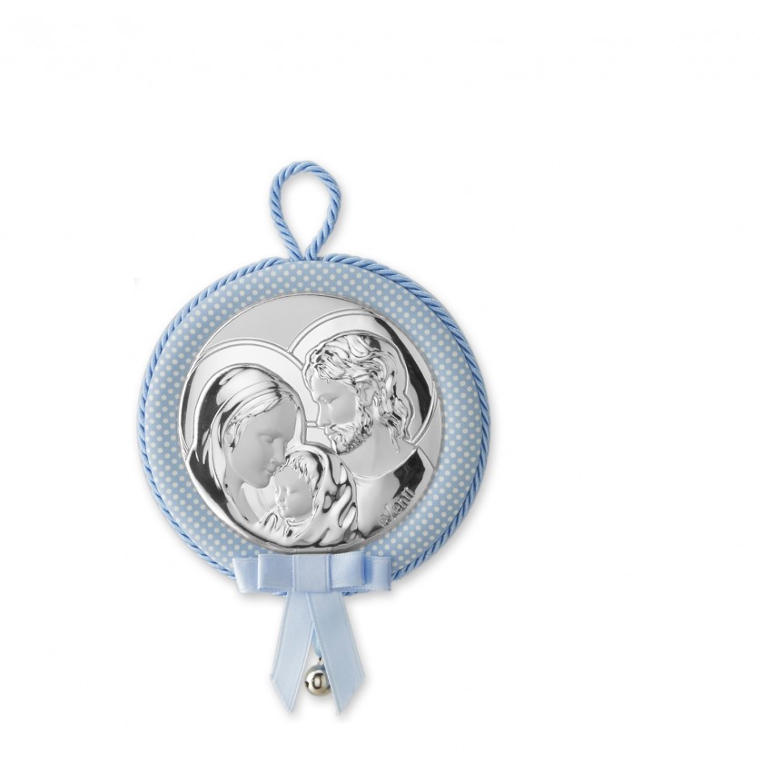 Medallon musical redondo Sagrada familia azul 11cms