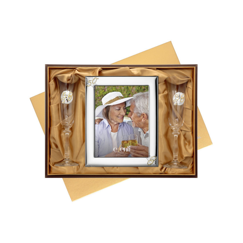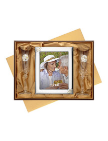 Set portafotos laminado de plata 18x24 + copas 50 aniversario