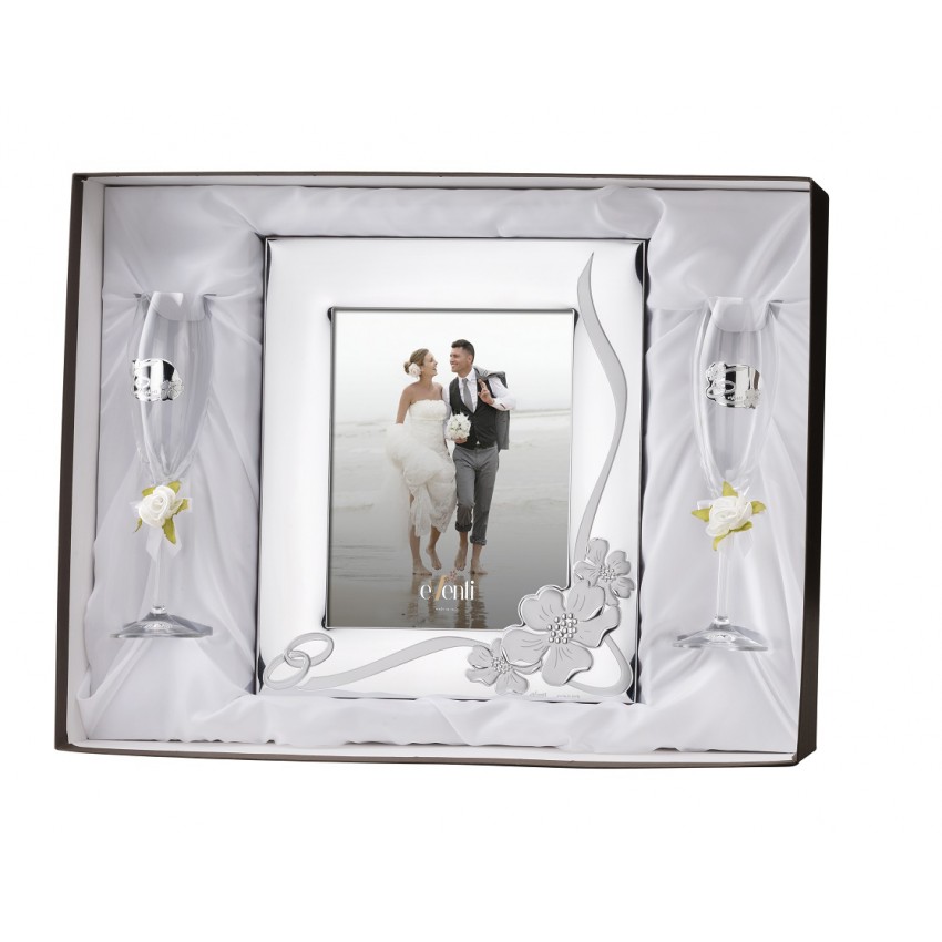Set portafotos laminado de plata 13x18 copas alianzas