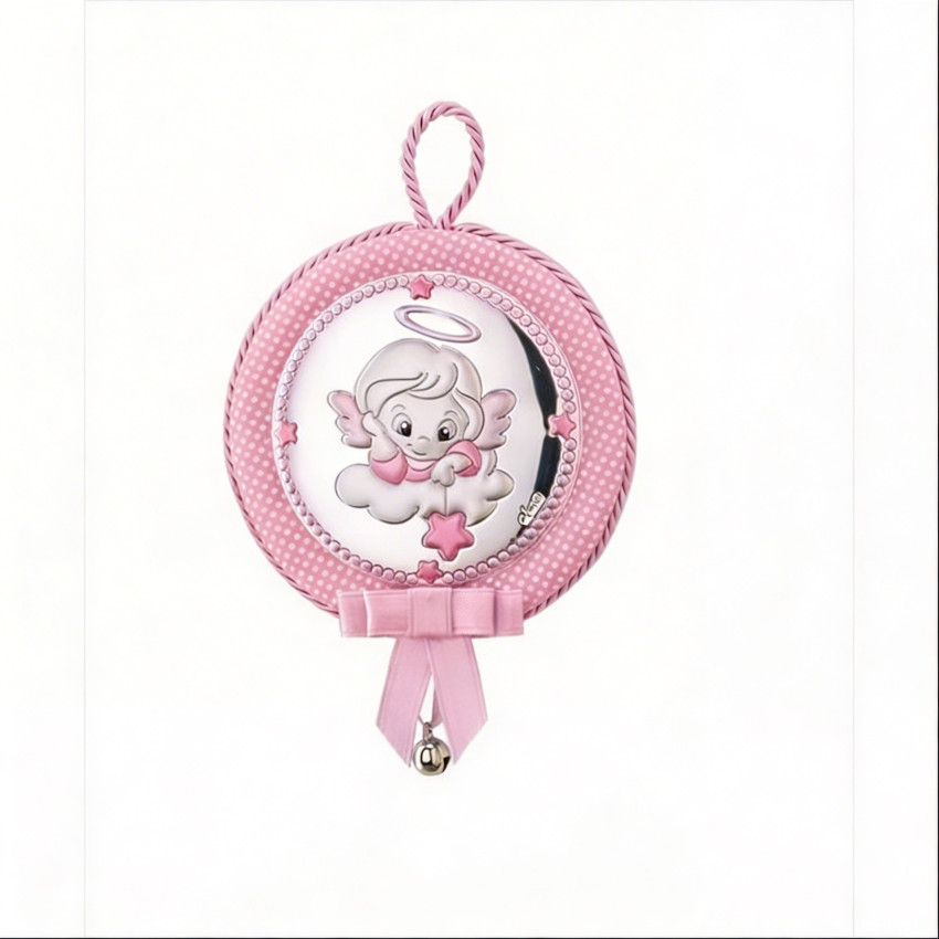 Medallon cuna carrito bebe musical angel estrella rosa plata