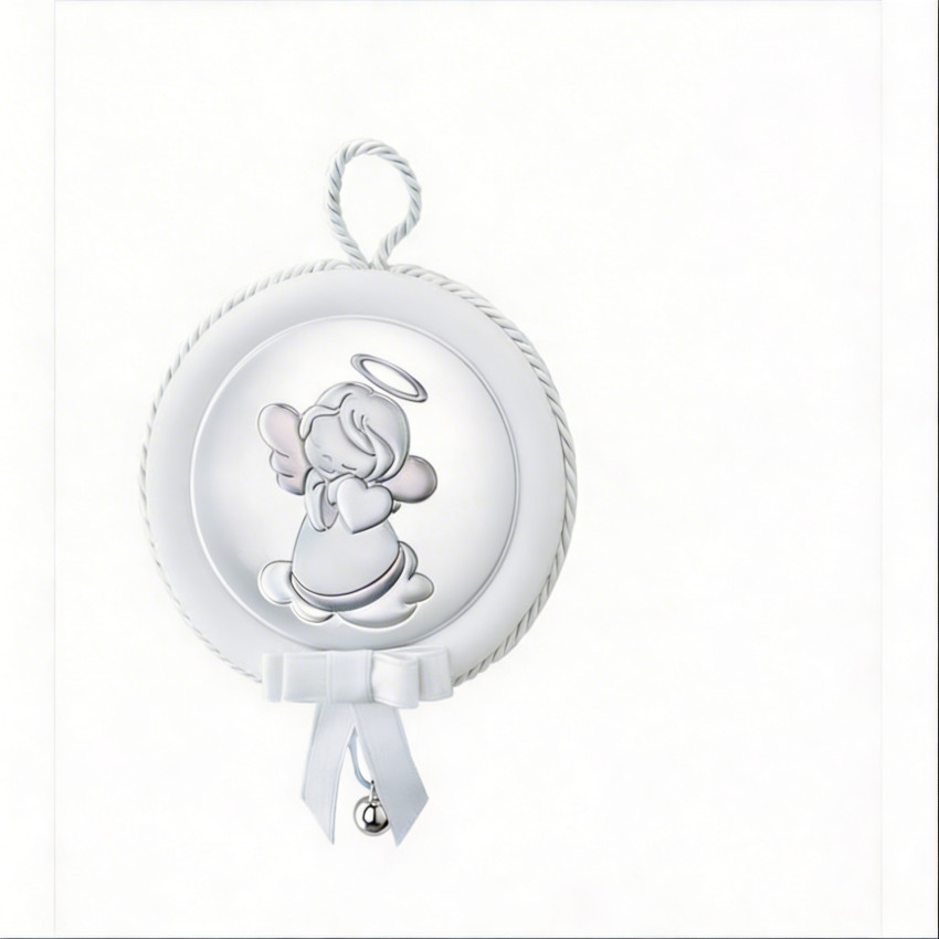 Medallon musical redondo angel corazon blanco