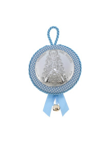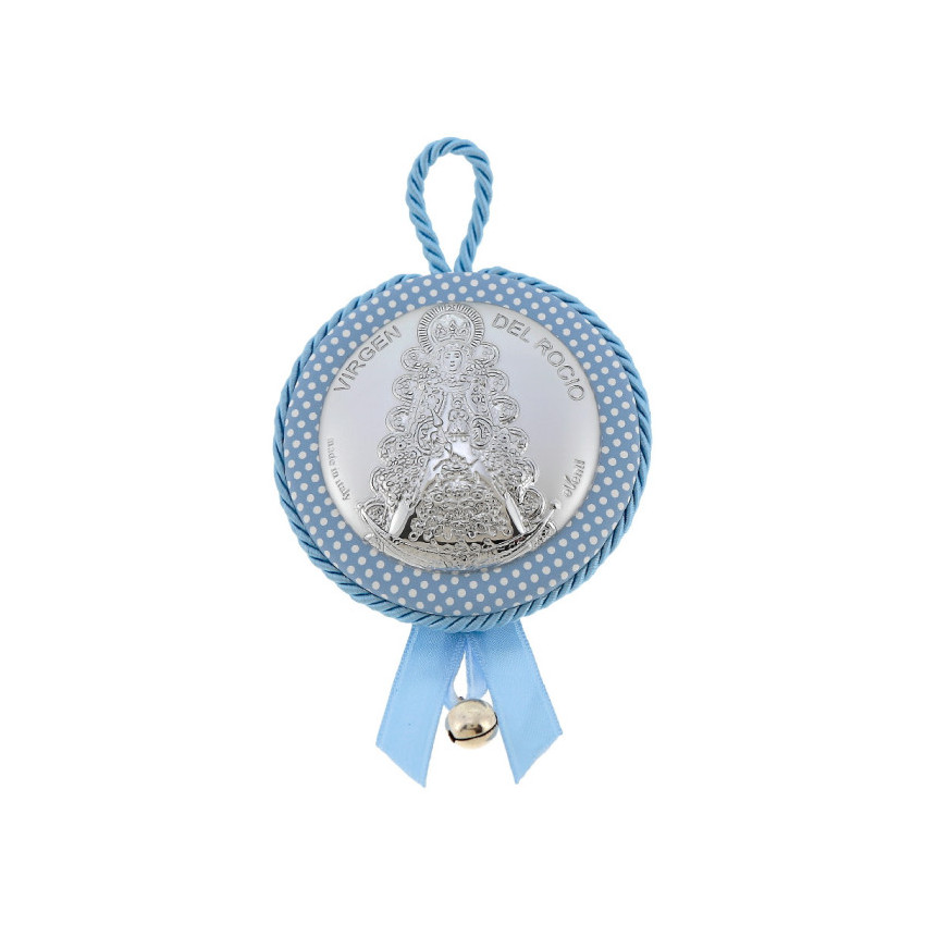 Medallon Virgen del Rocio azul lunares