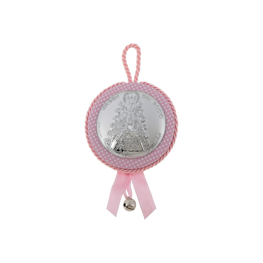 Medallon Virgen del Rocio rosa lunares