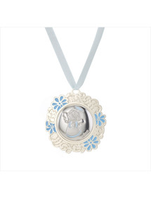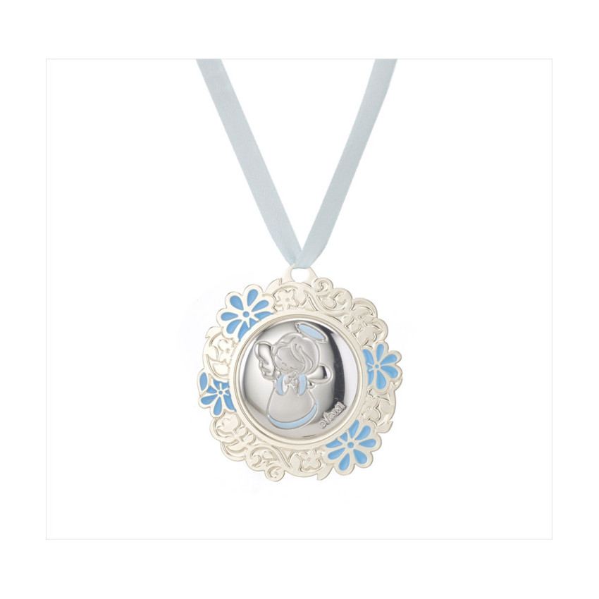 Medallon redondo angel rezando azul