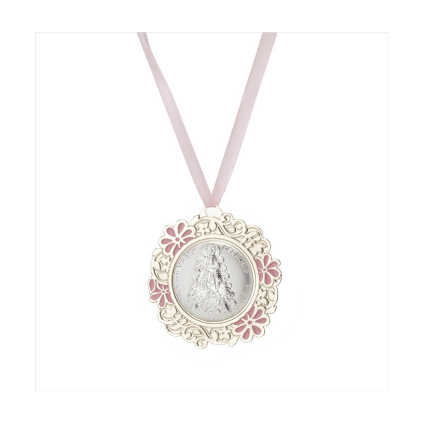 Medallon redondo Virgen Rocio rosa