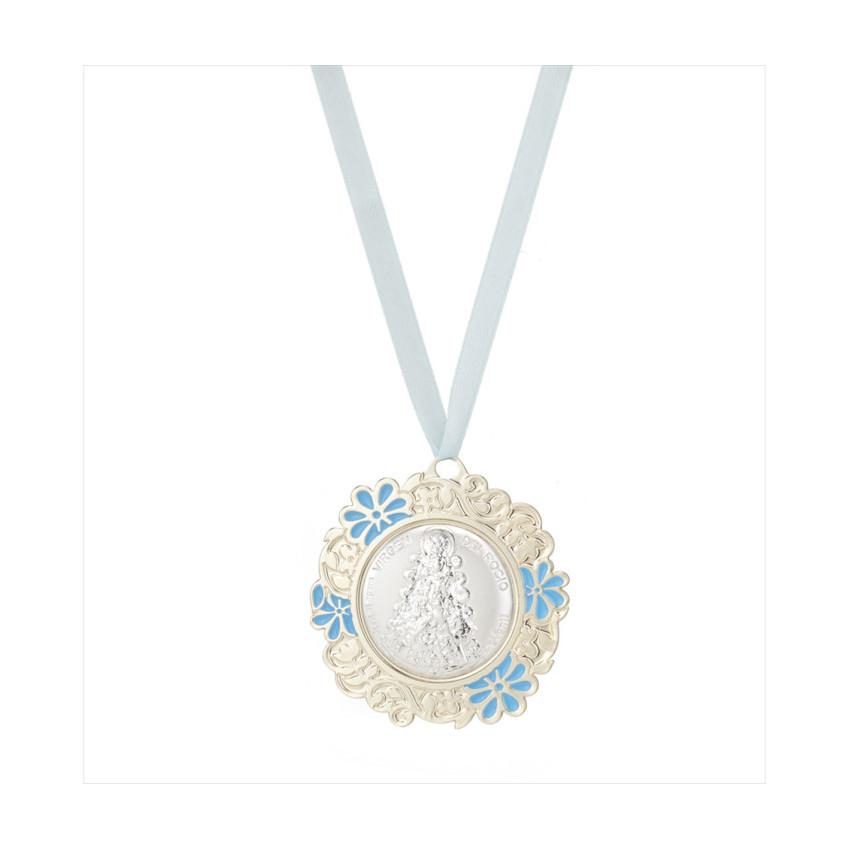Medallon metal Virgen Rocio 8cms azul