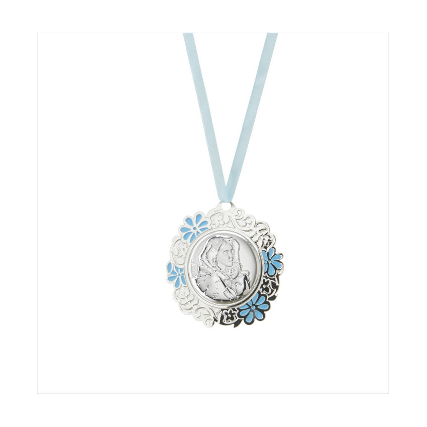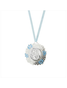 Medallon metal Virgen Ferruzzi azul 8cms