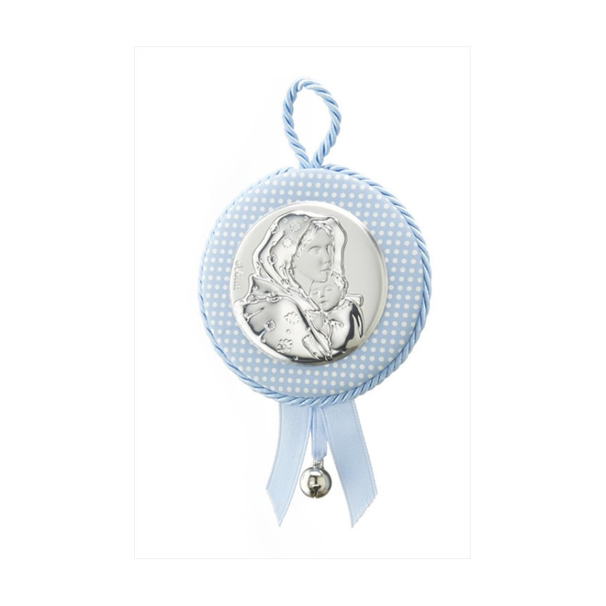 Medallon piel redondo Virgen Ferruzzi azul 7 cms