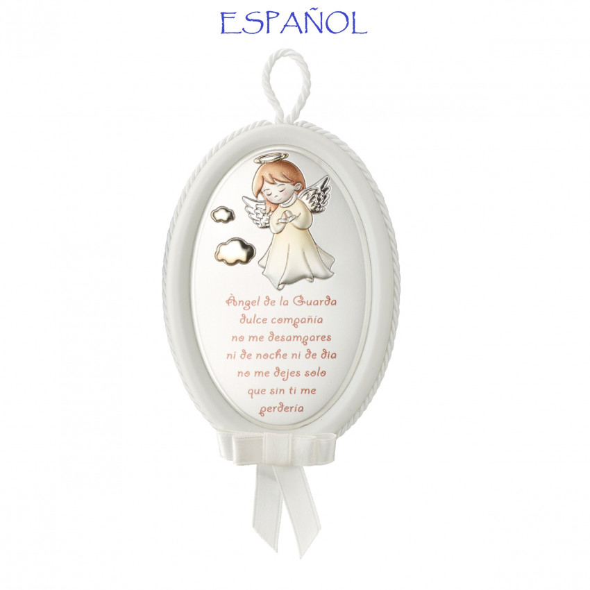Medallon musical oval blanco angel oracion español