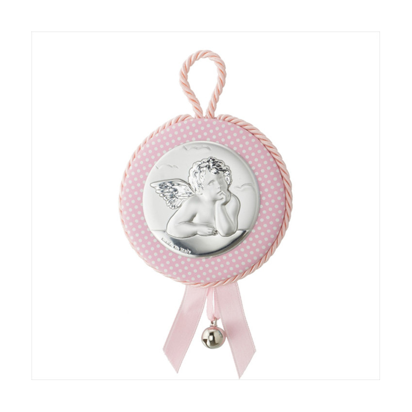 Medallon redondo topos rosa angelito 7cm