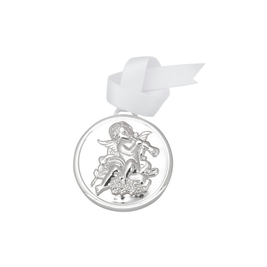Medalla cuna angel con flauta plata de ley 925 7cm