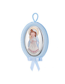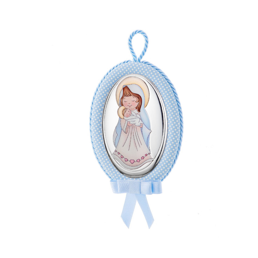 Medallon musical azul Virgen con niño