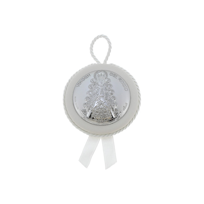 Medallon redondo Virgen del Rocio blanco