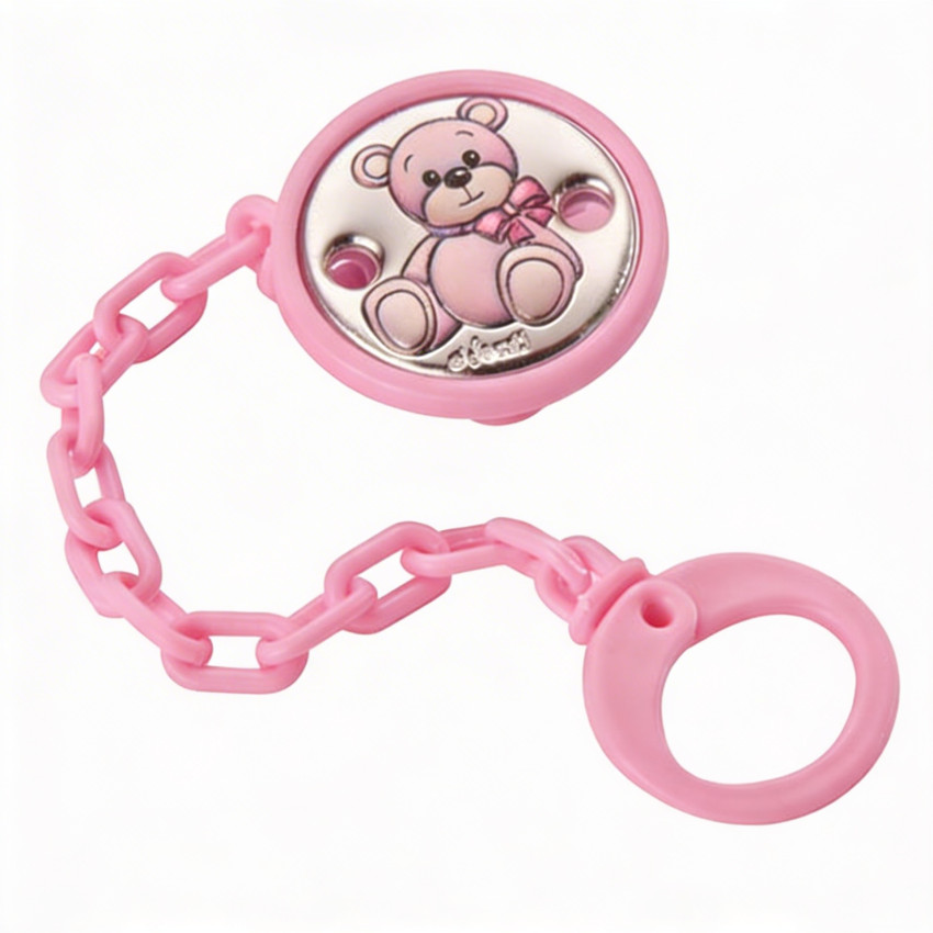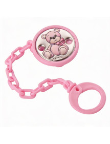 Pinza chupete oso lazo rosa