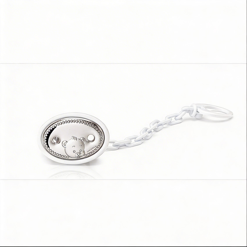 Pinza chupete con decoración mediante aplicación en Plata Bilaminada de 1ª Ley 925.