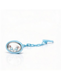 Pinza chupete grabar patucos celeste con Plata.