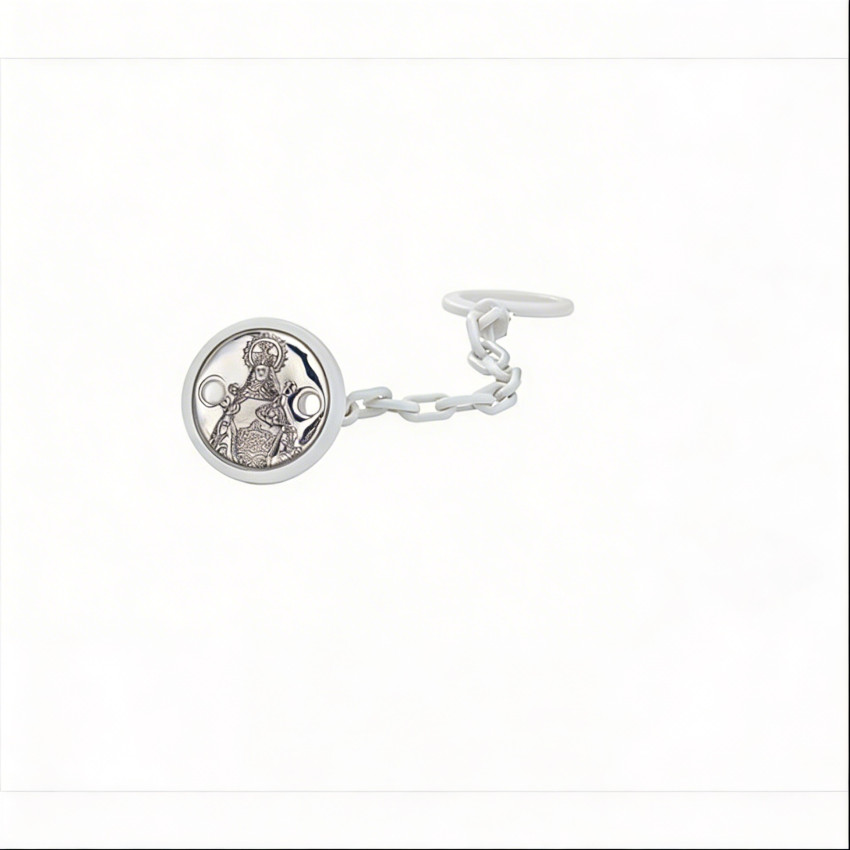 Pinza chupetes v. covadonga redonda blanca con Plata.