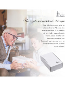 Este árbol conmemorativo no solo celebra los 70 años, sino que se convierte en un símbolo de gratitud y reconocimiento eterno. Cada detalle está diseñado para que este homenaje permanezca como un recuerdo imborrable durante generaciones.