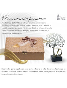 Cada Árbol de la Vida se entrega en un estuche artesanal fabricado a mano por Joyería El Faro, pensado para convertir tu regalo en una experiencia inolvidable. Desde el primer vistazo, la combinación de materiales de lujo y diseño exclusivo resalta la importancia de la ocasión.