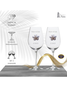 Copas vino cristal bohemia grabadas para bodas de plata 25 aniversario con aplicación plateada