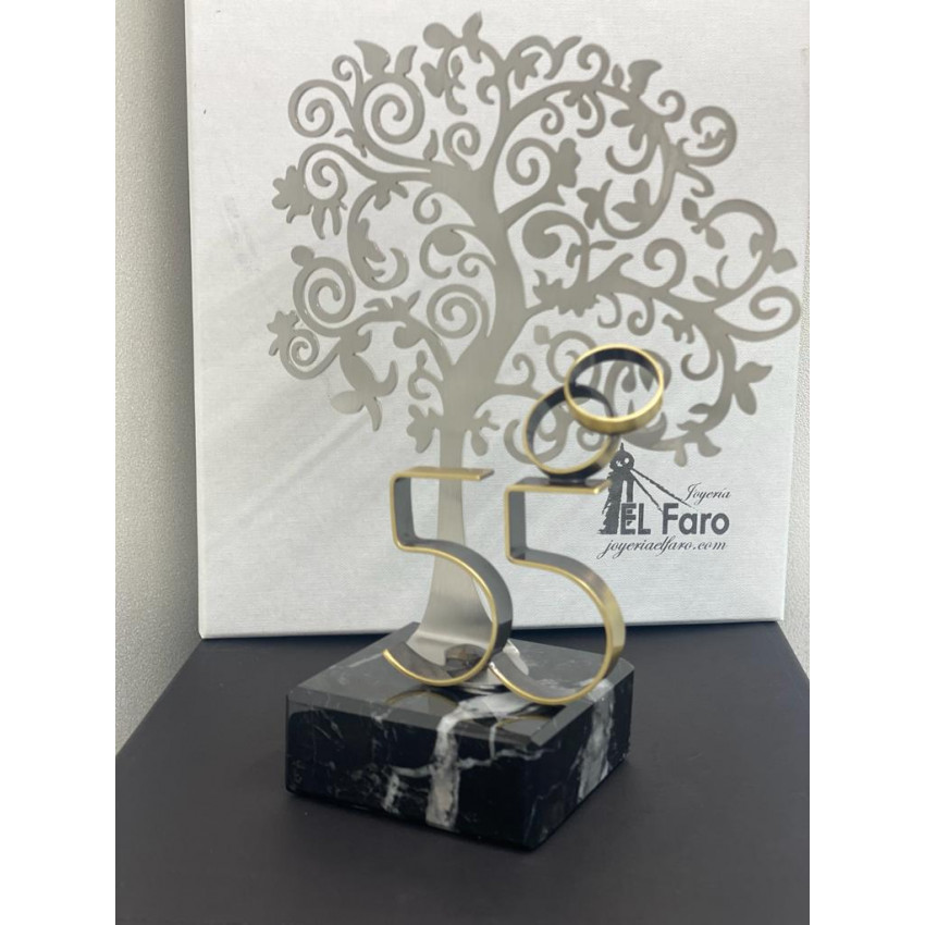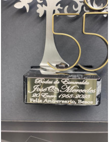 Elegante regalo personalizado para celebrar 55 años de matrimonio, las Bodas de Esmeralda. Un regalo original, único y personalizado con el que sorprender en una fecha tan señalada. Se envía envuelto para regalo y en caja estuche premium con el logotipo de Joyería el Faro sin coste adicional. Altura total 22 cms.